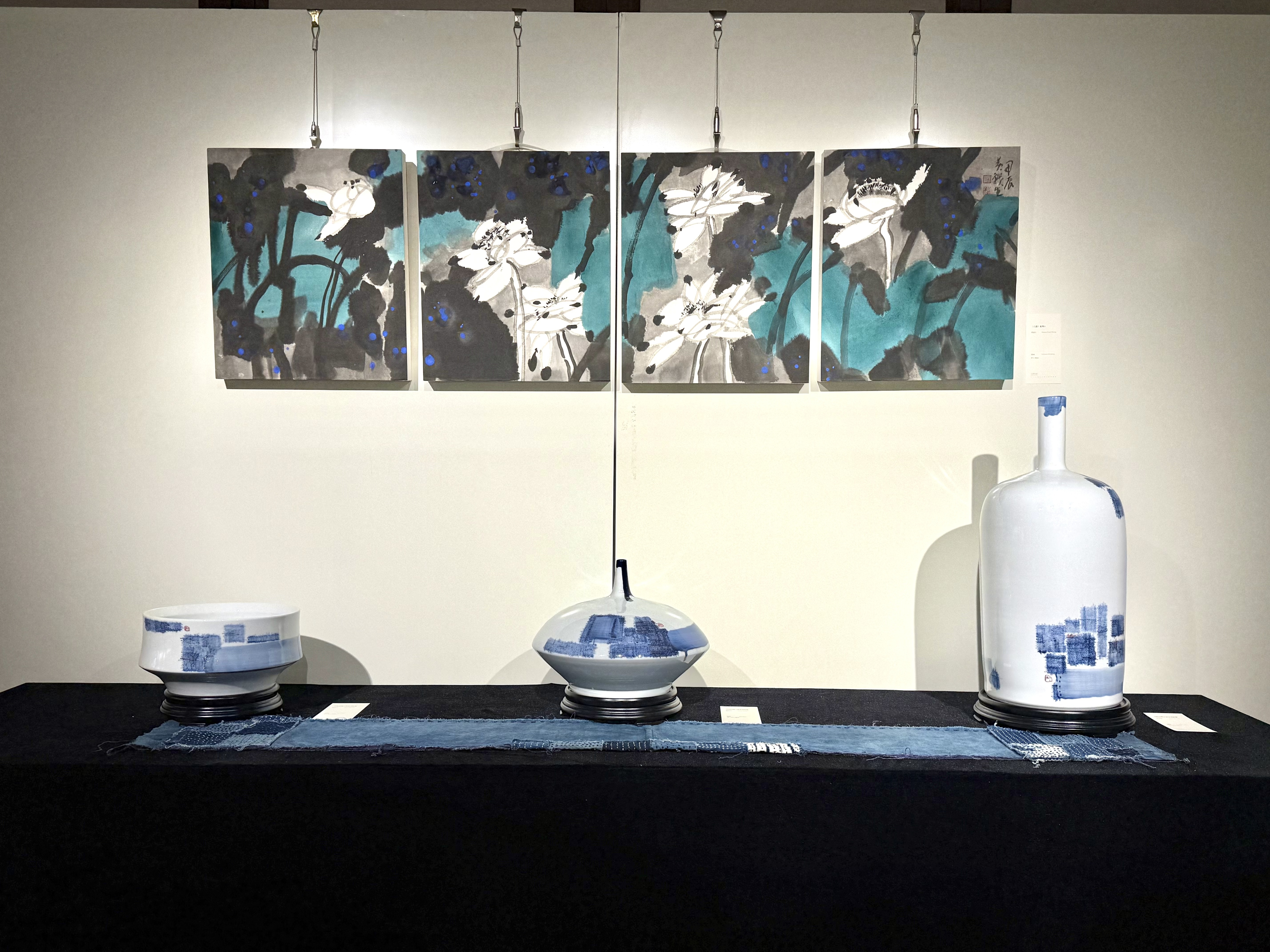 步入东方展区,一方可游可居的雅意空间徐徐展开。黄战生的《六荷》系列与瓷盘系列、马焕远的《累累繁华》、陈史军的《繁花》与百纳纹青花组器等二十余组作品,以当代笔墨与器韵延续文人美学的日常滋养。