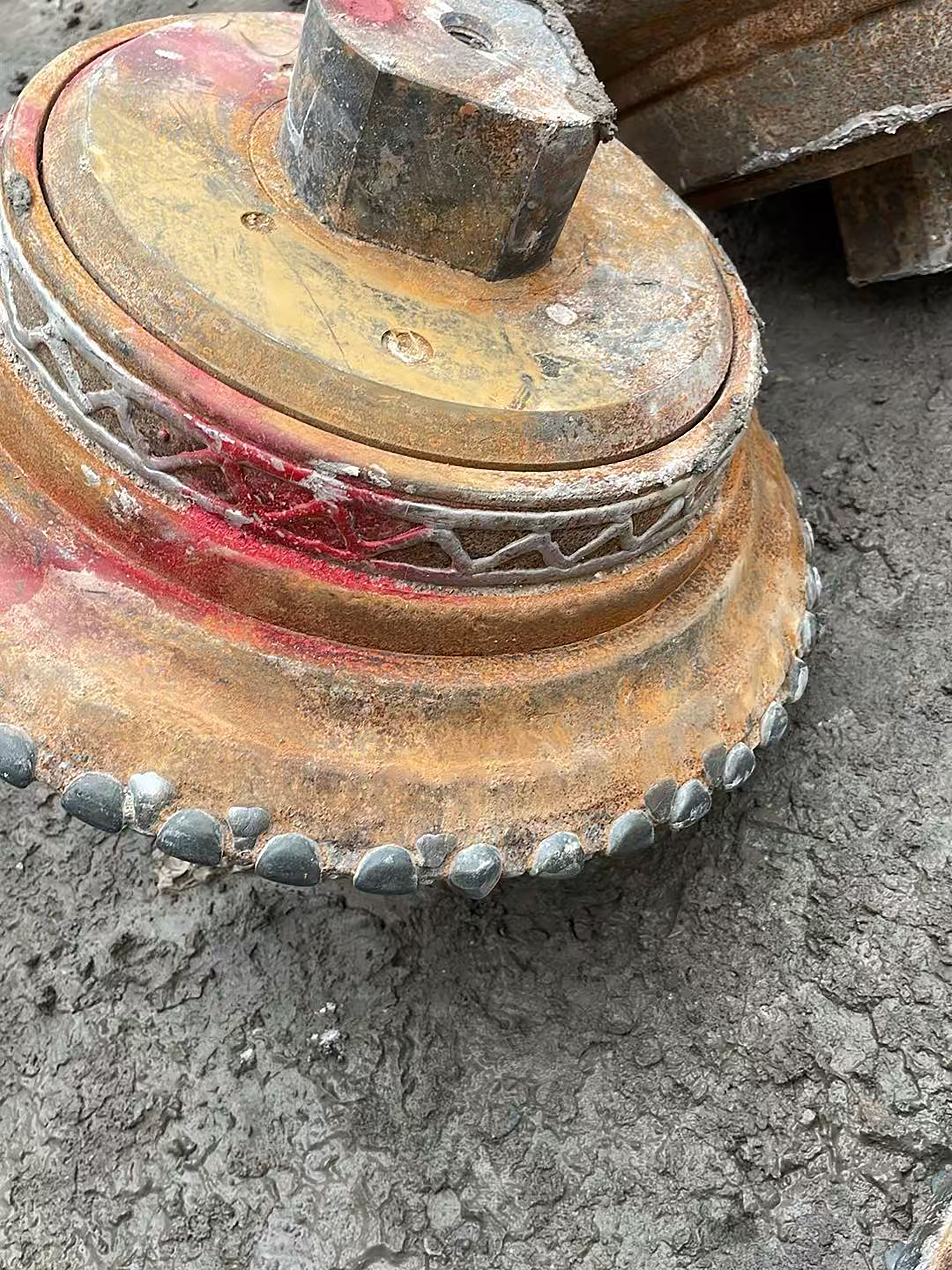 盾构机刀盘吊装下井。